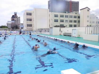7月9日(火)4年生の水泳の授業の様子です。頑張っています。