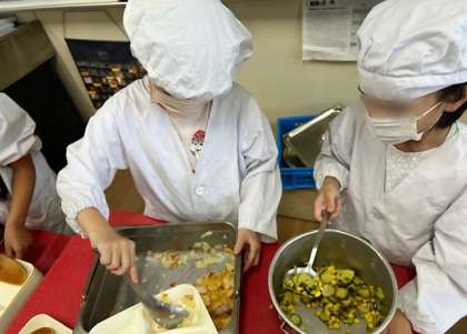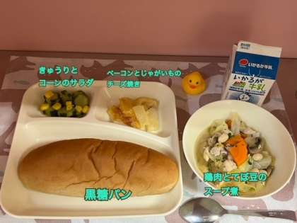 今日の給食は、児童に積極的に摂ってもらいたい「豆」を使用した献立が登場しました。