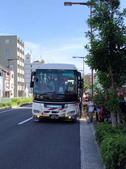 バスは子ども達を乗せて予定通り出発しました。気温30℃、快晴。