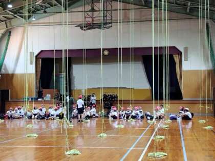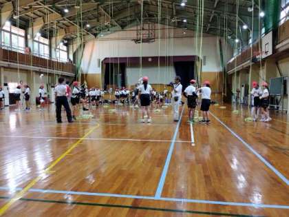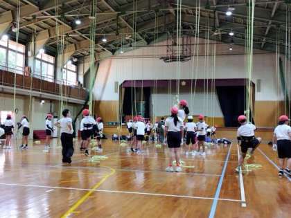 7月21日(月)ロープクライミングと魚つかみがはじまりました。ロープクライミングの様子です。気温29℃、天気が心配です。