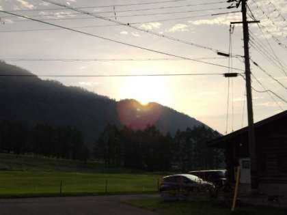 7月23日(水)林間学習最終日が始まりました。朝の会の様子です。気温23℃、快晴。爽やかな風が吹いています。