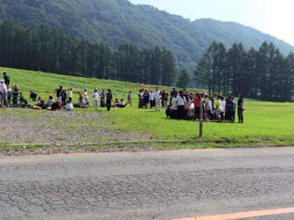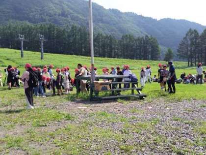 7月23日(水)林間学習最後のプログラム、焼き板が始まりました。気温27℃、快晴。風が爽やかなです。