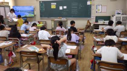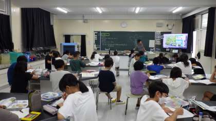 9月3日(水)1年生と3年生、5年生の様子です。今日は曇っていて暑さがましです。頑張っています。