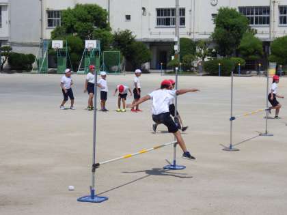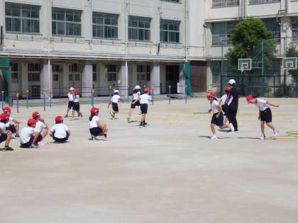 9月9日(月)残暑が厳しいですが子どもたちは頑張っています。上の写真は3年生の運動場での授業、中の写真は4年生の運動場での授業の様子。下の写真は4年生の体育館での様子です。暑さに負けず頑張っています。