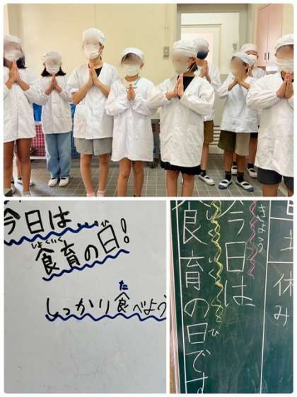 今日は食育の日でした。なるべく残さずに食べましょう、感謝して食べましょうと給食委員会の児童が、朝に呼びかけをしました。