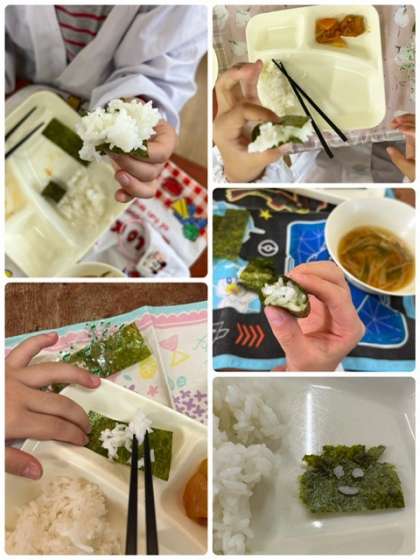 1年生の教室では焼きのり効果(?)なのか、いつもより白ごはんが早く無くなりました^^