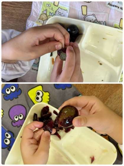 今日はデザートとして「ぶどう」が登場しました。