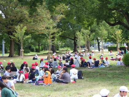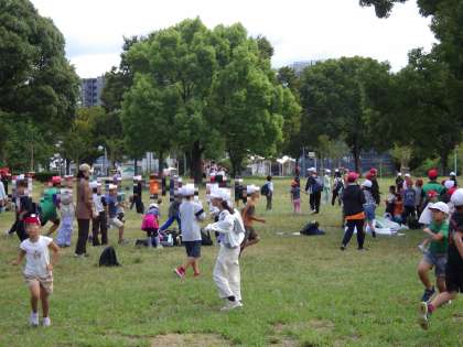 10月9日(水)さわやかな秋空の下、鶴見緑地公園でウオールラリーを行いました。ウオークラリーの様子です。