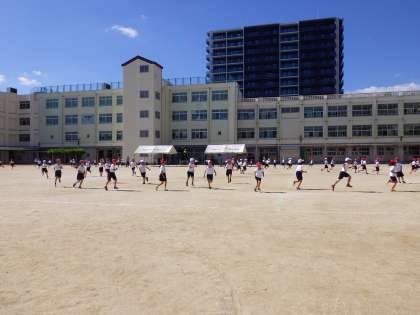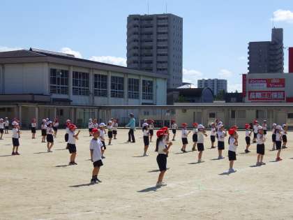 10月10日(木)運動会に向けて運動場で練習が始まっています。1年生の様子です。