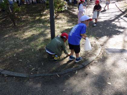 10月17日(木)1年生が鶴見緑地へどんぐりを拾いに行きました。どんぐりをたくさん拾いました。