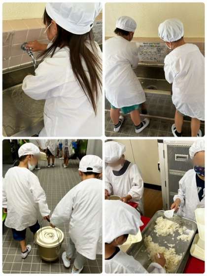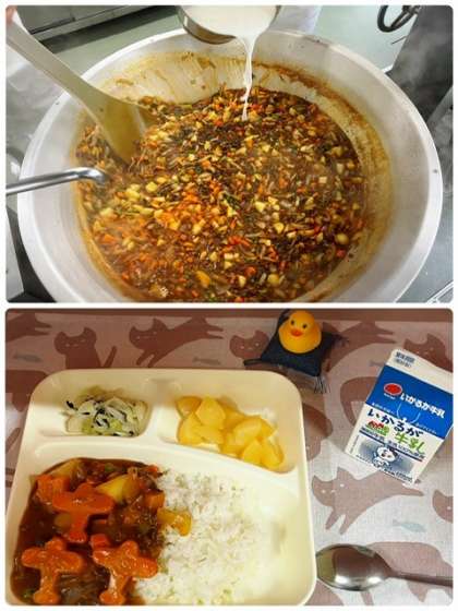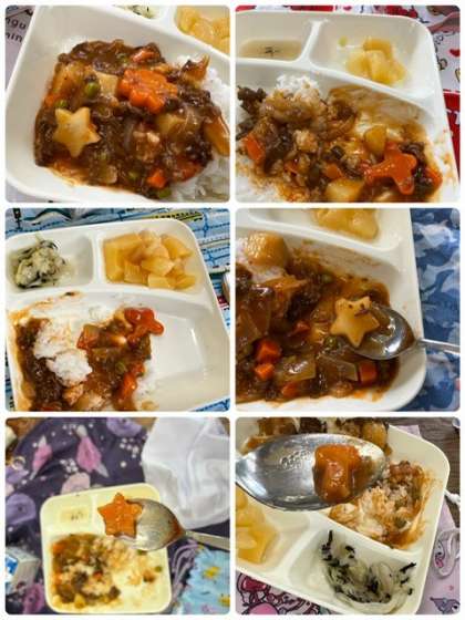 今日のハヤシライスには、ラッキーにんじんだけでなくラッキーじゃがいもが入っていました。2年生の教室でも、多くの児童のお皿に入っていて、みんな最後まで大事にとっていました^^