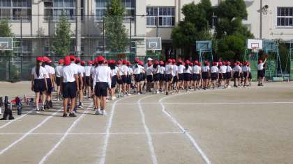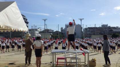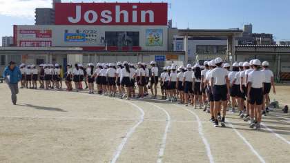 10月22日(火)運動会に向けて3回目の全体練習です。入場行進もそろっています。がんばっています。