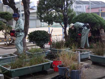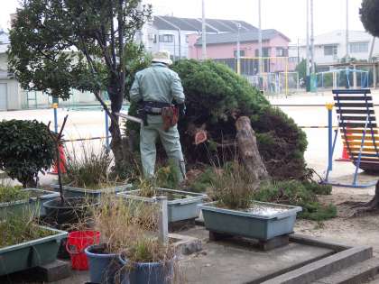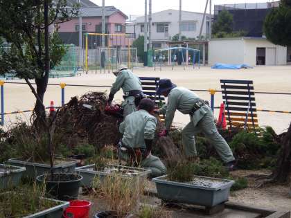 11月7日(金)校庭北側の倒れたカイズカイブキを解体撤去していただきました。ありがとございました。