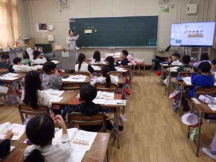 11月18日(月)朝から寒くなってきていますが子どもたちは元気です。1年生の様子です。