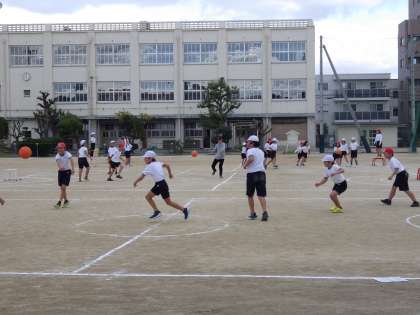 11月18日(月)朝から寒くなってきていますが子どもたちは元気です。上の写真は3年生、下の写真2枚は4年生の体育の様子です。