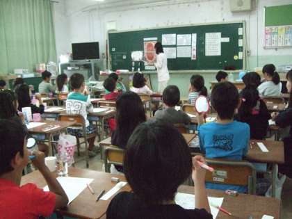 2年生は、前歯だけでなく第一大臼歯という大切な奥歯に生えかわる時期です。第一大臼歯は、奥にあるため磨きにくくすぐにむし歯になってしまいます。そこで、むし歯予防についての知識を教えていただいたり、正しい歯のみがき方を指導していただいたりしました。2年生は、しっかりとお話を聞き正しいみがき方にチャレンジすることができていました。