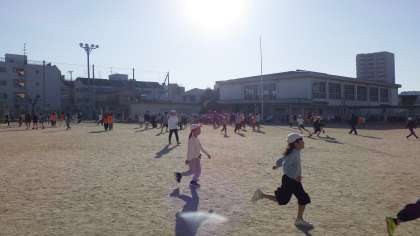 11月21日(木)朝からいい天気です。子どもたちは元気です。今日のにじいろ集会は増え鬼ごっこ、楽しい時間です。