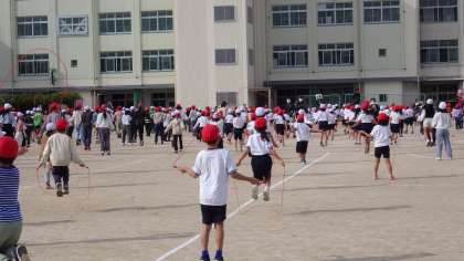 11月27日(水)15分の休み時間、3分間耐寒縄跳びをがんばっています。