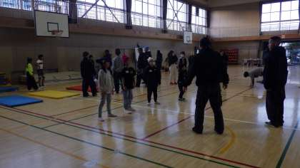 11月29日(金)PTA主催、親子ブレイクダンス講習会の様子です。ダンスチーム、アマタイコクの皆さんにお越しいただきブレイクダンスを教えていただきました。