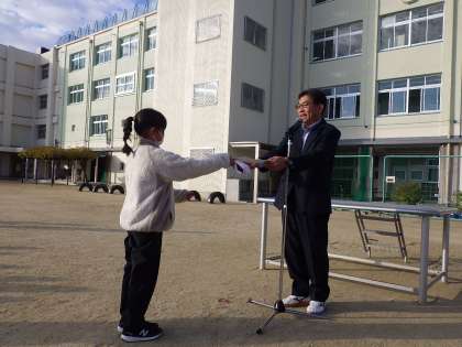 全校朝会 公開日 2024/12/16 更新日 2024/12/16 お知らせ 12月16日(月)2学期最後の全校朝会です。夏休みの自由課題、「防火・防災図画」努力賞をいただき賞状を渡しました。 いいね(0)