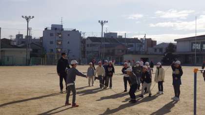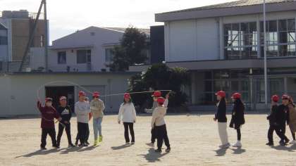 1月10日(金)3年生が運動場で縄跳びをしています。