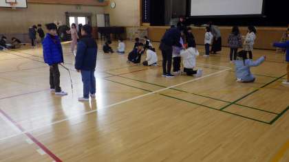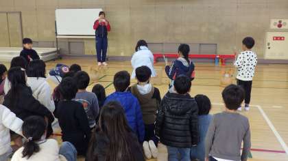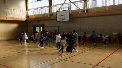 1月14日(火)2年生が体育館でソンセンニムより韓国・朝鮮の遊びを教えていただいています。