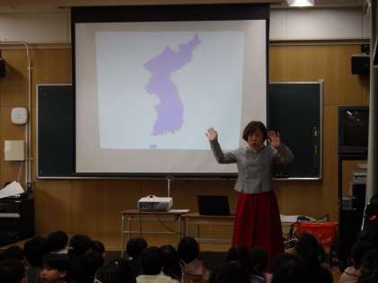1月21日(火)1年生はソンセンニムにお越しいただき韓国・朝鮮について学習しています。