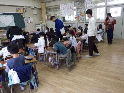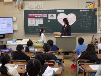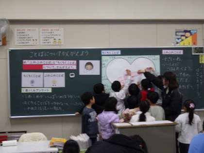 1月22日(水))1月22日(水)1年1組で学級活動「ふわふわ言葉とちくちく言葉」の研究授業です。がんばっています。