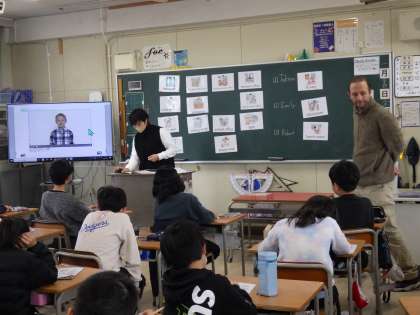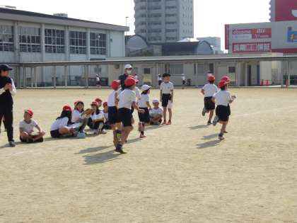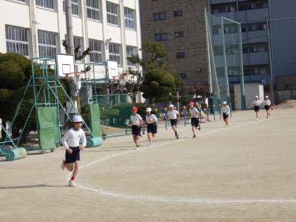 1月24日(金)4年生の授業と4年と5年が合同で長距離走を走っています。がんばっています。