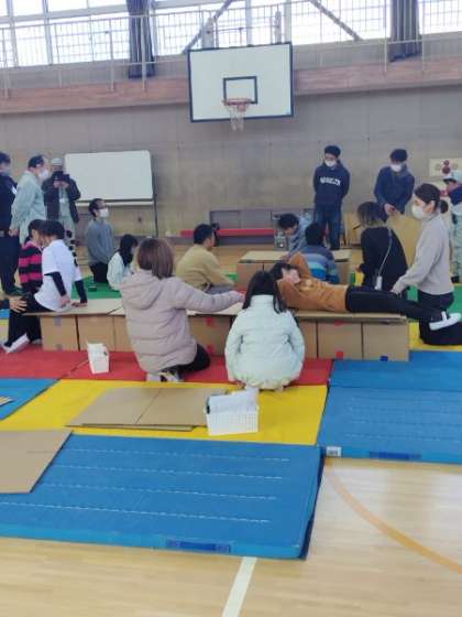 1月26日(日)地域の防災リーダーの皆様によるダンボールによる防災グッズを作る取り組みを行いました。4年生のみなさをと保護者の皆様に参加して頂きました。ダンボールのベッド、トイレを作りました。講師の皆様、地域の皆様、区役所の皆様ありがとうございました。
