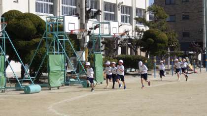 2月4日(火)1年生の体育、長距離走です。寒い中がんばって走っています。