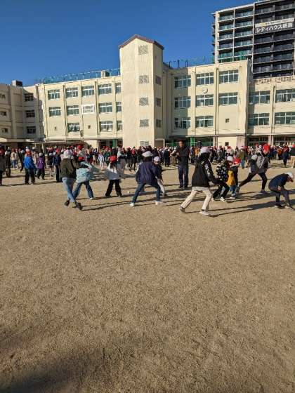 たてわり班によるにじいろ集会。今日は、運動委員会による遊び紹介の後、班ごとに分かれて遊びました。