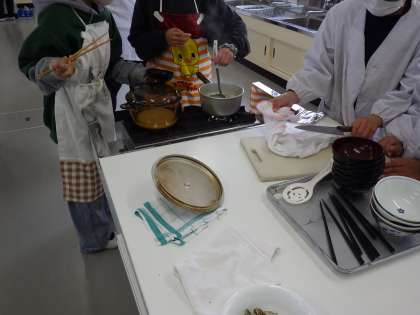 2月13日(木)5年生の調理実習の様子です。みそ汁とご飯を作っています。