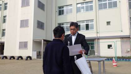 2月17日(月)全校朝会を行いました。作文で賞状を頂きました。賞状の伝達を行いました。