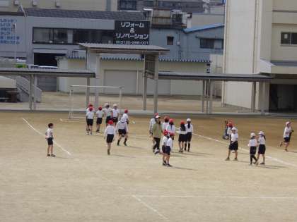 2月25日(月)体育の授業の様子です。上から1年生、5年生、6年生、頑張っています。