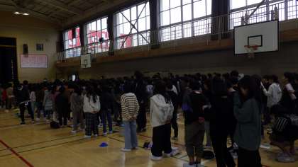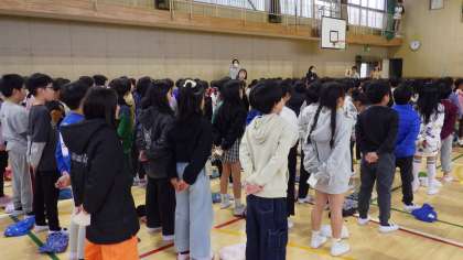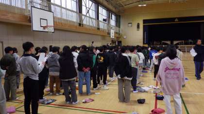 2月28日(金)卒業を祝う会に向けて1年生から5年生までが体育館で練習しました。