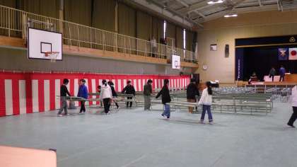 3月17日(月)5年生が明日の卒業式に向けて準備をがんばっています。