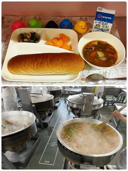2校あわせて約1100人分の給食ということで、給食室は大忙し!