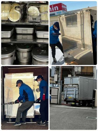 出来上がった給食は大きなコンテナに載せて、トラックで清水小学校に運ばれていきます。