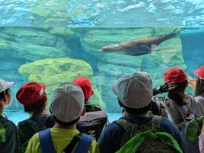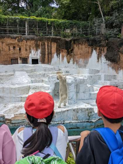 動物をクラスで見ながら移動。今からグループ活動です。
