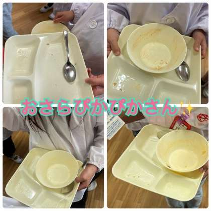 1年生の教室ではみんなしっかりと食べていて、さらに多くの児童が、おさらぴかぴかさん✨でした^^