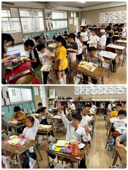 今日のういろうは、新茶の季節にあわせて「まっ茶ういろう」が登場しました。4年生の教室でも特にういろうは大人気で、おかわりに大行列ができていました^^