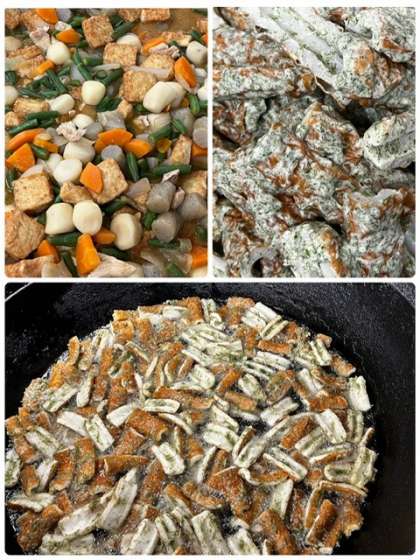 ちくわに青のりを加えた衣をつけ、なたね油であげています。