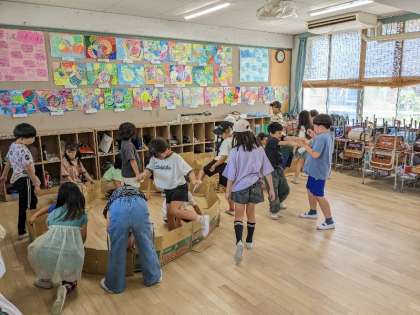 2〜6年の各クラスで、お店の準備をしたり、リハーサルをしたりしていました。