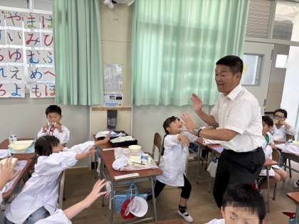 1年3組では、「完食できた〜!」ということで、ハイタッチで喜びを分かち合いました。