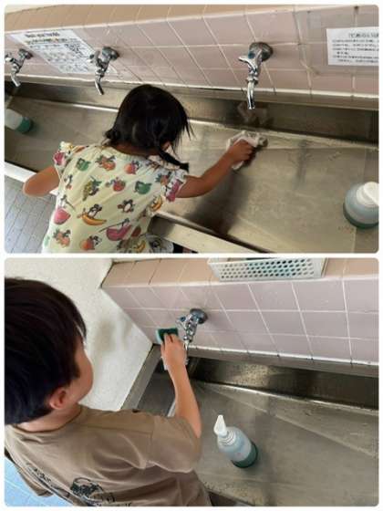給食室前と横の手洗い場の担当は、今年度1年1組さんと3年1組さんです。とにかく丁寧なそうじで、終わったあとはピカピカ✨でした😊