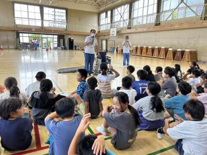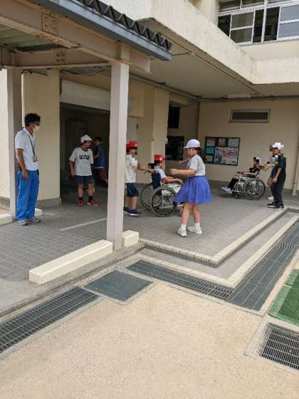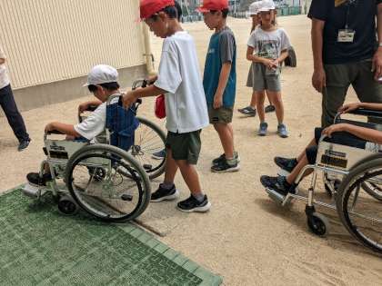 大阪市立心身障がい者リハビリテーションセンターの方々に来ていただき、4年生が車いす体験を行いました。