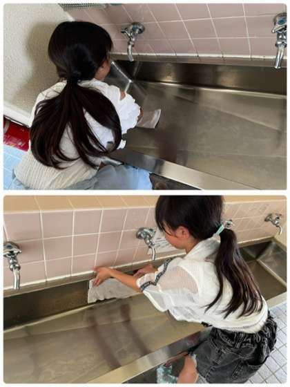 水滴がなくなるまでぞうきんを使って、丁寧に拭きあげていました。