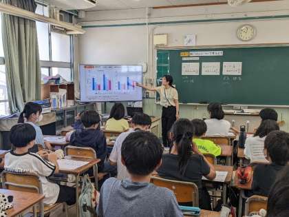 栄養教諭の方に来ていただいて行っている栄養授業。