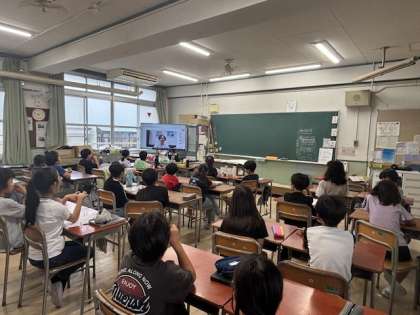 校長の話、6年生からの千羽鶴完成報告、生活指導主任からの夏休みの過ごし方についての話があり、最後に校歌を歌いました。